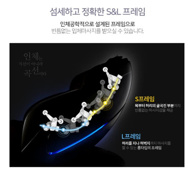 섬세하고 정확한 S&L 프레임으로 빈틈없는 안마가 가능하며, 마사지볼의 수평과 수직의 움직임을 컨트롤하여 손으로 마사지 하는 듯한 강력한 입체 마사지를 받으실 수 있습니다.