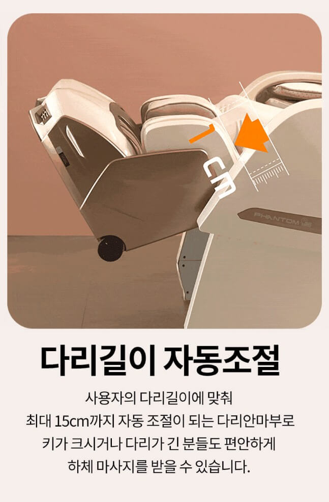 인체공학적 자동 체형 측정 시스템으로 최적화된 맞춤 안마를 제공하며 최대 17cm 다리 길이 조절도 가능합니다.