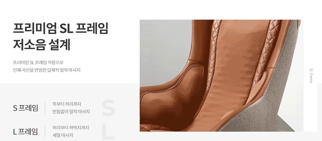 섬세하고 정확한 S&L 프레임으로 빈틈없는 안마가 가능하며, 마사지볼의 수평과 수직의 움직임을 컨트롤하여 손으로 마사지 하는 듯한 강력한 입체 마사지를 받으실 수 있습니다.