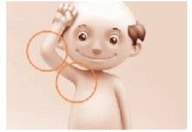 겨드랑이에서 손목까지 겨드랑이에서 시작하여 팔꿈치 부분을 따라 손까지 아래로 작업합니다. 손바닥, 손가락 사이 및 손톱 아래 표시를 살펴보십시오.